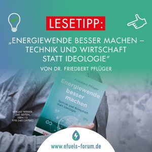 Wenn die Energiewende erfolgreich sein soll, müssen geeignete regulative Anreize für Wirtschaft und Verbraucher gesetzt werden. Unternehmen würden dann in den Ausbau von CO2-ärmeren synthetischen Kraft- und Brennstoffen investieren und Verbraucher würden von fossilen auf nicht-fossile Kraftstoffe umsteigen. Die Politik müsste mehr auf Technologieoffenheit setzen, d.h. vor allem, dass Elektromobilität und Mobilität mit eFuels in Motoren vom Gesetzgeber nicht länger mit zweierlei Maß gemessen werden dürfen.
