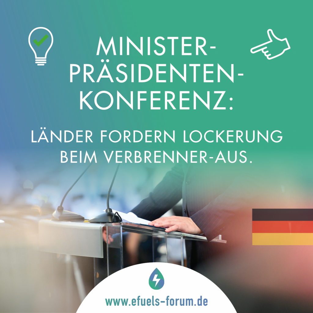 tagesschau.de: In einem Beschluss der Ministerpräsidentenkonferenz heißt es: „Ein starres Verbot der Verbrennertechnologie ab dem Jahr 2035 ohne Rücksicht auf seine tatsächliche Umsetzbarkeit würde nicht nur industrielle Kernkompetenzen und die Wettbewerbsfähigkeit des Automobilstandortes Deutschland gefährden, sondern auch die gesellschaftliche Akzeptanz der Elektromobilität insgesamt.“